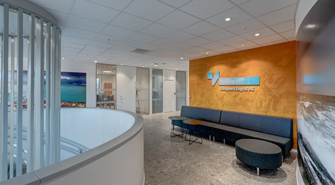 Das neue Büro- und Lagergebäude für Ødegaard Engros wurde auf Flisneset, etwa 15 Kilometer östlich des Stadtzentrums von Ålesund, errichtet. Der Neubau verfügt über eine Grundfläche von knapp über 7.500 Quadratmetern.