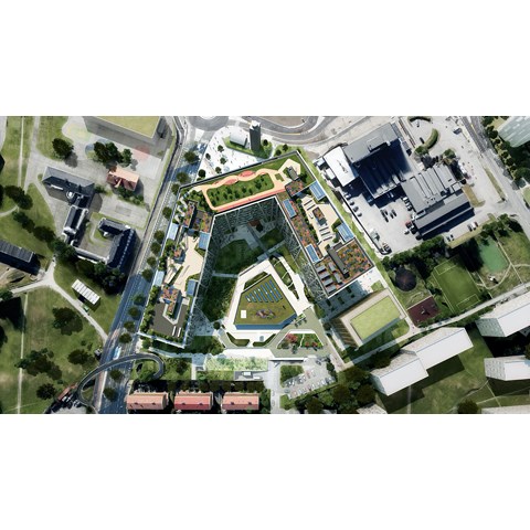 Gesamtgröße: 88.000 m² (Büros, Dienstleistungen, Hotel)