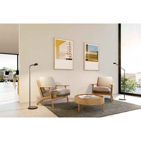 The floor version comes with a choice of arm. It is available with one or two joints, adding to the flexibility of the luminaire. Both versions have the characteristic cup-shaped lamp head, with symmetric light output and the same flexible joint between lamp head and arm. Freestanding luminaires are easy to move around, offering a great deal of flexibility when arranging the lighting scheme in a room.