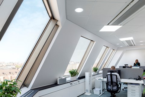 Daniel Evertsson berättar vidare att Svenska Hus har en positiv attityd till ny teknik. ”Vi är mycket öppna för att testa nya grejer och smart teknik”, säger han. ”Genom att ligga i framkant och testa nya saker själva ökar vi vår egen kunskap vilket medför att vi på ett trovärdigt sätt kan visa våra kunder vilka möjligheter som finns.” Som ett led i denna approach har Svenska Hus valt innovativa och smarta belysningslösningar från Glamox till företagets kontor i K6.