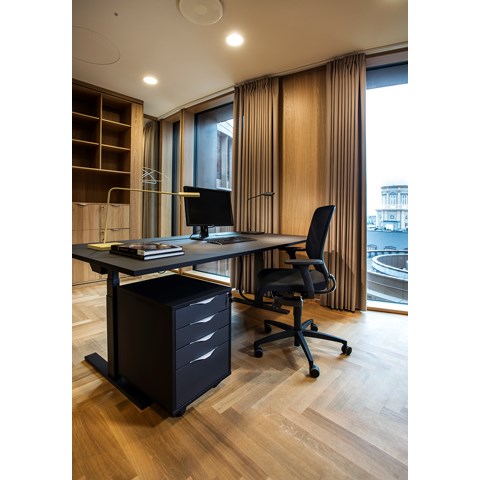Lamperne er valgt på grund af deres funktionalitet, og ikke mindst fordi de understøtter arkitekturen og kontorernes øvrige indretning. Advokatfirmaet Gorrissen Federspiel er en kvalitets- og designbevidst kunde. Da virksomheden i 2016 skulle indrette sig i det nybyggede Axel Tower i København, henvendte de sig derfor til Basta Office for at sikre et ensartet udtryk i de nye kontorer.