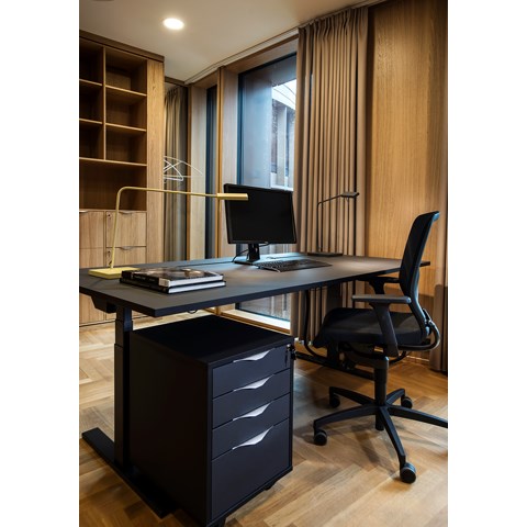 "Kontorerne har en generel belysning, men man vil gerne give medarbejderne mulighed for at vælge en bordlampe. Derfor gik jeg på udkig efter en passende lampe, der både er diskret, let og minimalistisk samtidig med, at den giver et godt lys og kan passe ind i kontorernes indretning, som primært er i sort og eg", siger Susannes Melby, der er indretningsarkitekt mDD hos Basta Office.