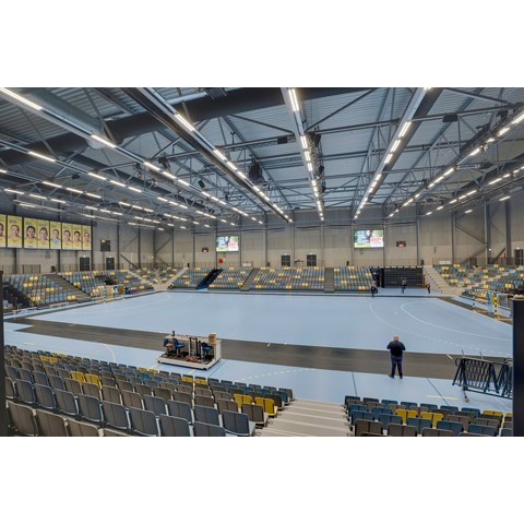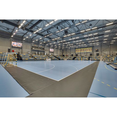 Med kravsspecifikationer fra TV2, kunne Glamox leverer sit nye Sportshalsarmatur - Min. ca. 1200 lux nyværdi højfrekvent (højere end 50hz) aht. superslowmotion optagelser. Farvetemperatur 3000-4.000 Kelvin, RA værdi min. 90.