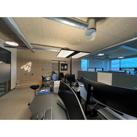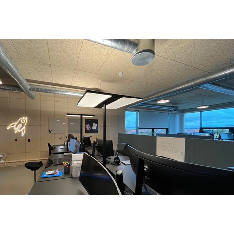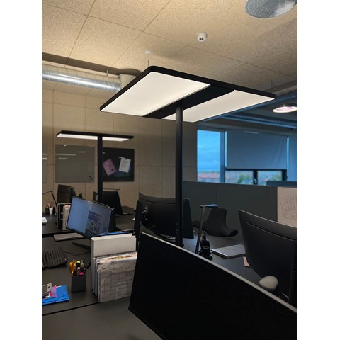 Der blev overvejet flere løsninger, men den endelige beslutning blev truffet til fordel for Luxo Adapt-familien. Adapt er placeret mellem arbejdsbordene og tilsluttet via en stikkontakt. Dette har fjernet behovet for at ændre den eksisterende og permanente belysningsinstallation. Med denne løsning har de ansatte nu mulighed for let at tilpasse både op- og nedlyset efter deres individuelle præferencer samtidig med, at det nu giver tilstrækkeligt lys til arbejdsområdet.