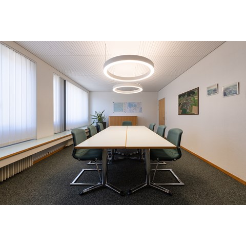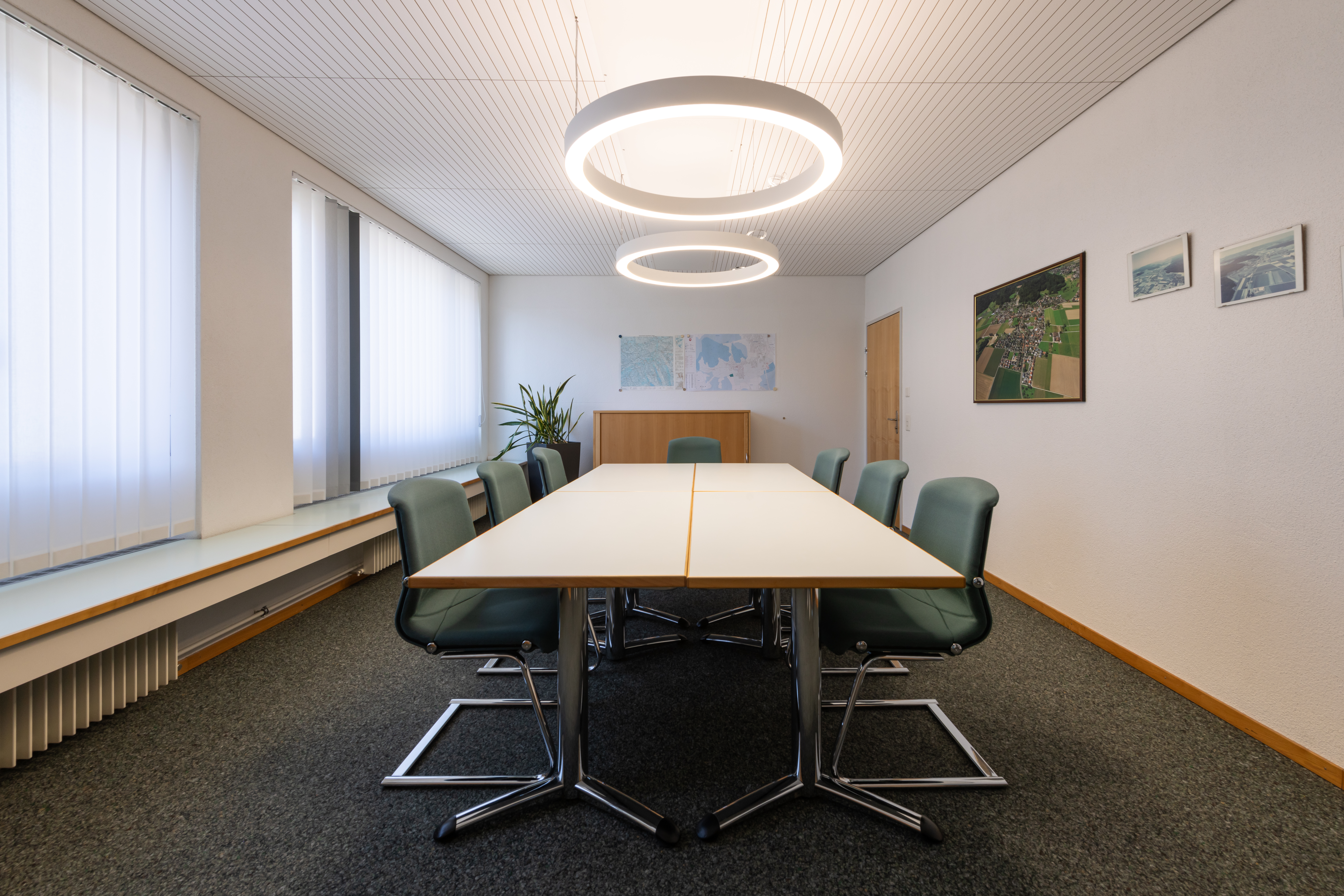 In den Sitzungszimmern wurden die alten Leuchten komplett entfernt und durch elegante Ringleuchten FX65 FLOW ersetzt. Diese filigranen Leuchten mit direktem und indirektem Lichtanteil verleihen den Räumen ein modernes und hochwertiges Erscheinungsbild.