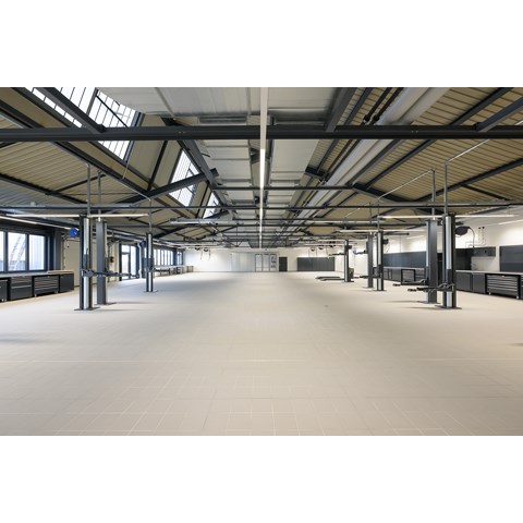 an der Leuchte eingestellt werden und somit optimal auf die Bedürfnisse der Mitarbeitenden angepasst werden. Die Werkstatt ist mit dem Lichtbandsystem ONEline und den dazu passenden Linsenleuchten ausgestattet. Die Leuchten sorgen für ein gleichmässiges und effizientes Arbeitslicht. Ausserdem lässt sich das System ONEline einfach und schnell montieren.