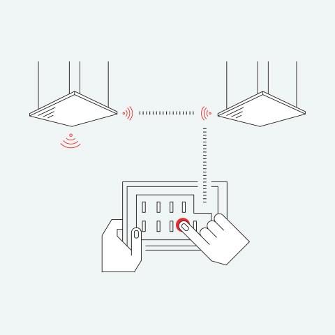 Glamox Wireless Bluetooth basiert auf einem 2,4 GHz BLE Mesh-Funknetz. Das System kann auch von anderen Herstellern genutzt werden und gehört zu den am häufigsten verwendeten drahtlosen Kommunikationsprotokollen auf dem Markt. Das System ermöglicht alle wesentlichen Funktionalitäten, wie Bewegungserkennung und Tageslichtsteuerung.