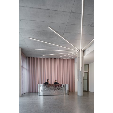 IM NEUEN HEADQUARTER der Sony Music Entertainment Germany GmbH in Berlin Schöneberg ist das Licht Teil eines architektonischen Gesamtkonzepts, das sowohl auf ästhetische als auch auf akustische Weise wirkt. An einem Ort, an dem Musik produziert, präsentiert und gehört wird, sollen Beats und Melodien auch über die Beleuchtung erlebbar werden, und so haben Glamox, die Lichtplanerin Paula Sekles und die Innenarchitekten von Studio Karhard ein Lichtkonzept entwickelt, das im wahrsten Sinne des Wortes ‚Musik für die Augen‘ ist.