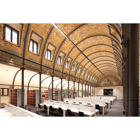 Das Gebäude, das seit 1986 für Bibliothekszwecke genutzt wird, ist seit 2021 umgebaut worden. Das Gewölbe des historischen Lesesaals wurde saniert, das Mittelschiff ist in seiner ursprünglichen Wirkung als zentraler Raum wieder in den Vordergrund gestellt worden. Zudem sind die Arbeitsplätze im Lesesaal modernisiert und erweitert worden, um weitere Lernbereiche für Studierende zu schaffen. Die Bücherregale, der Empfangstresen sowie Serviceboxen und Besprechungstische wurden in den seitlichen Schiffen untergebracht.