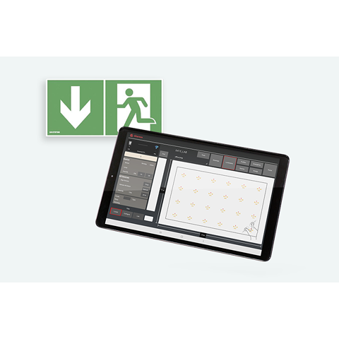 Die i65 kann mit einer integrierten Notlicht-Funktion geliefert werden. Mit einem DALI-Notlicht-Wechselrichter/Batteriepack und Lichtsteuerung lässt sich ein vollständiges Notlicht-Monitoring mit zentraler Meldung und Download der Notlicht-Prüfprotokolle aus der Cloud realisieren.