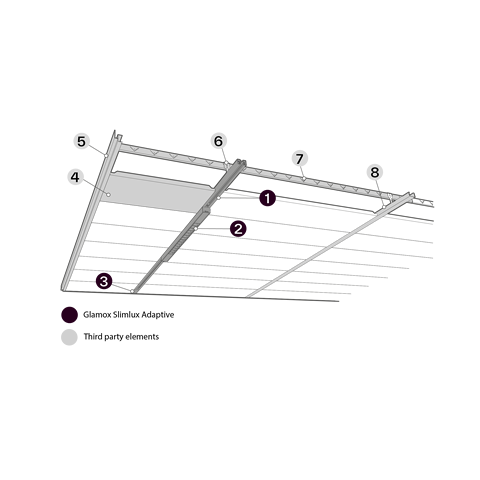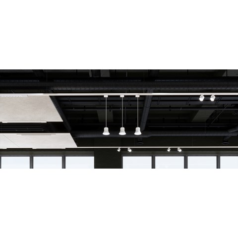 SLIMLUX Adaptive is engineered to support load-bearing functions, making it ideal for suspending acoustic metal tiles or rafts directly from the Adaptive power profile.