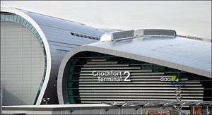 Dublin Airport Terminal 2 (T2) is a three story curvilinear building that sits astride the main access road to Terminal 1.