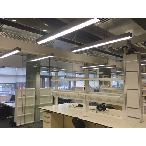 A complete Glamox lighting soloution from laboratories to patient lighting using 2500  DALI addressable luminaires throughout.