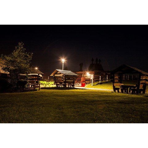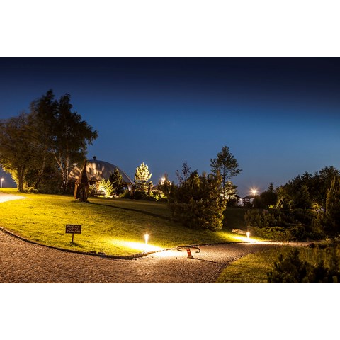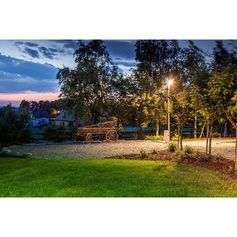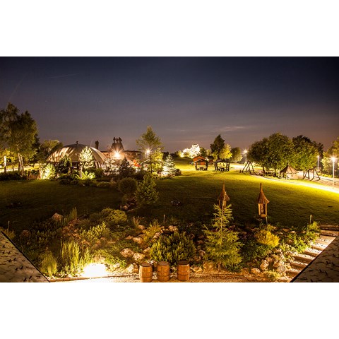 The hotel’s striking architecture is inspired by the noble traditions of the region. To ensure guests’ safety and comfort, modern solutions have been thoughtfully integrated. The enchanting garden surrounding the hotel invites guests to take a peaceful stroll while admiring the natural beauty of the Kraków-Częstochowa Upland. A dedicated playground for children has also been arranged within the garden. The entire area is illuminated by our lighting systems, which not only provide a high level of safety but also accentuate the distinctive features of the surrounding landscape.