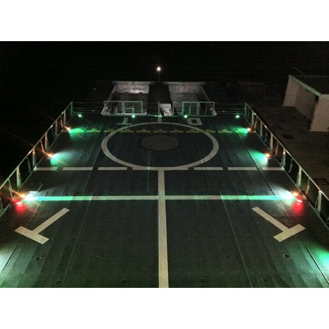The development of lighting solutions for helidecks represents a huge challenge in terms of mechanical, electrical and lighting technology. It means that the products have to be extremely robust and must function absolutely reliably across a temperature range from -25°C to +45°C. Maintenance-free LED technology ensures that lights have a long and reliable lifecycle. Due to their use in extreme environmental conditions, helideck lighting products have to be robust and durable in many aspects: they must be UV-resistant. The housing should be made from seawater-resistant aluminium. This sensitive technology has to be fully vibration-proof. An IP rating of IP66/67 is recommended for products installed on exposed positions such as a helideck.