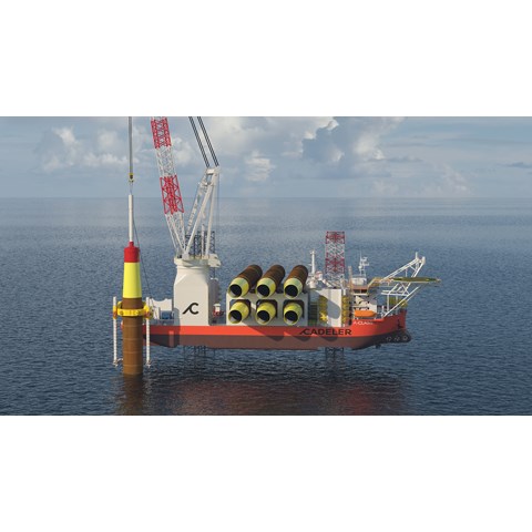 Picture: Artist’s impression of an A-Class hybrid WTIV performing wind turbine foundation piling.