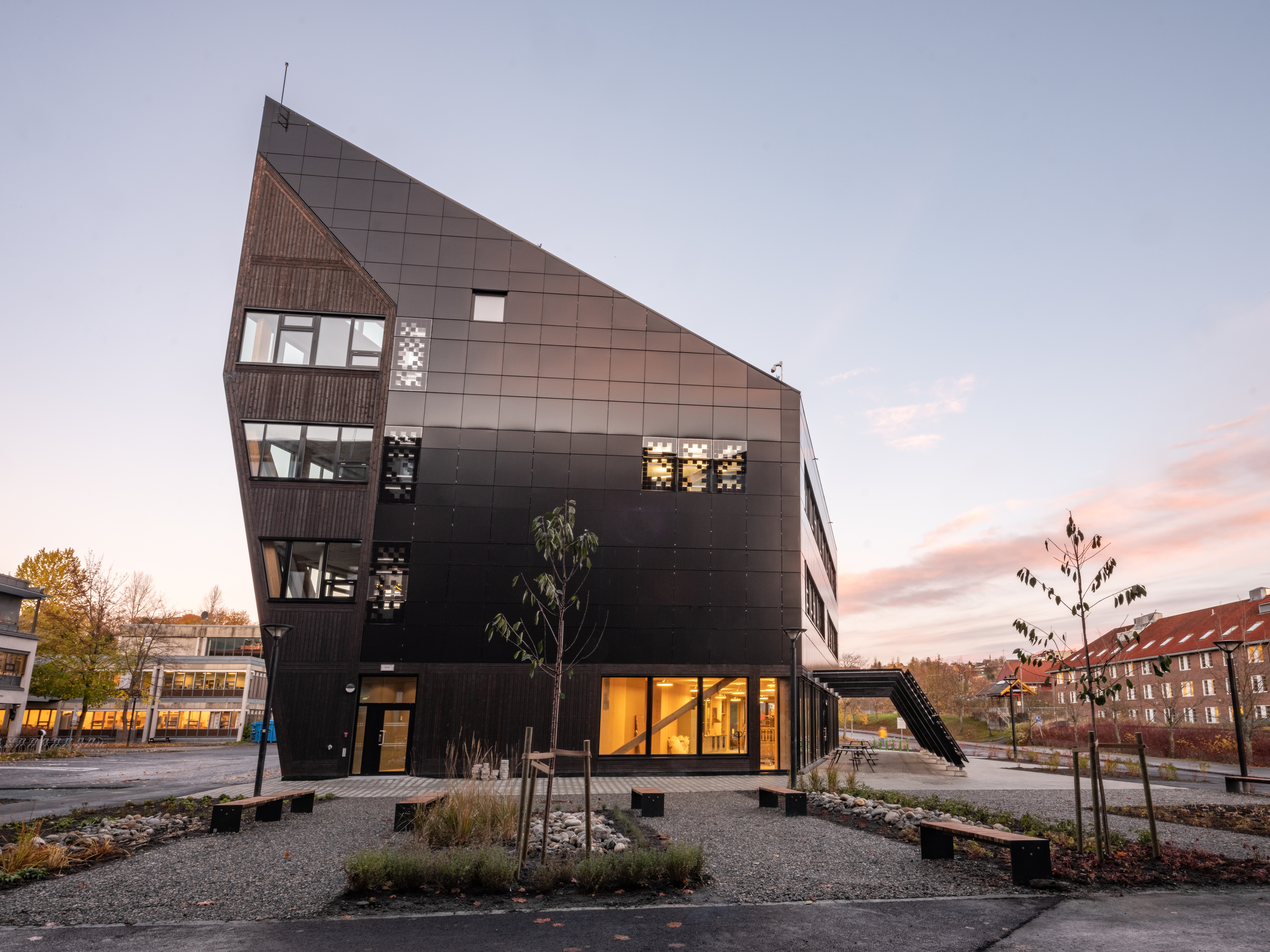 - Når man reiser et bygg vil man bestandig slippe ut noe CO2. Det må vi kompensere for ved å samle inn og levere utslippsfri energi. Løsningene som er valgt gjør at vi kan levere strøm til det lokale elektrisitetsnettet- og varme til fjernvarmenettet, forklarer Jacobsen.