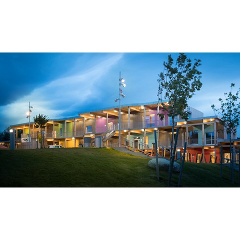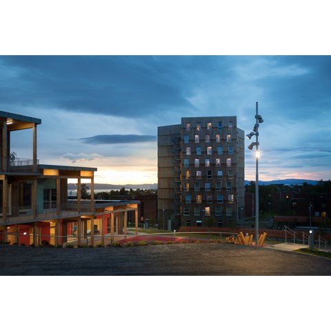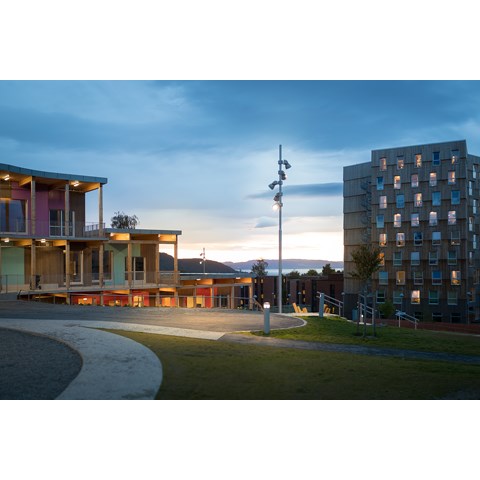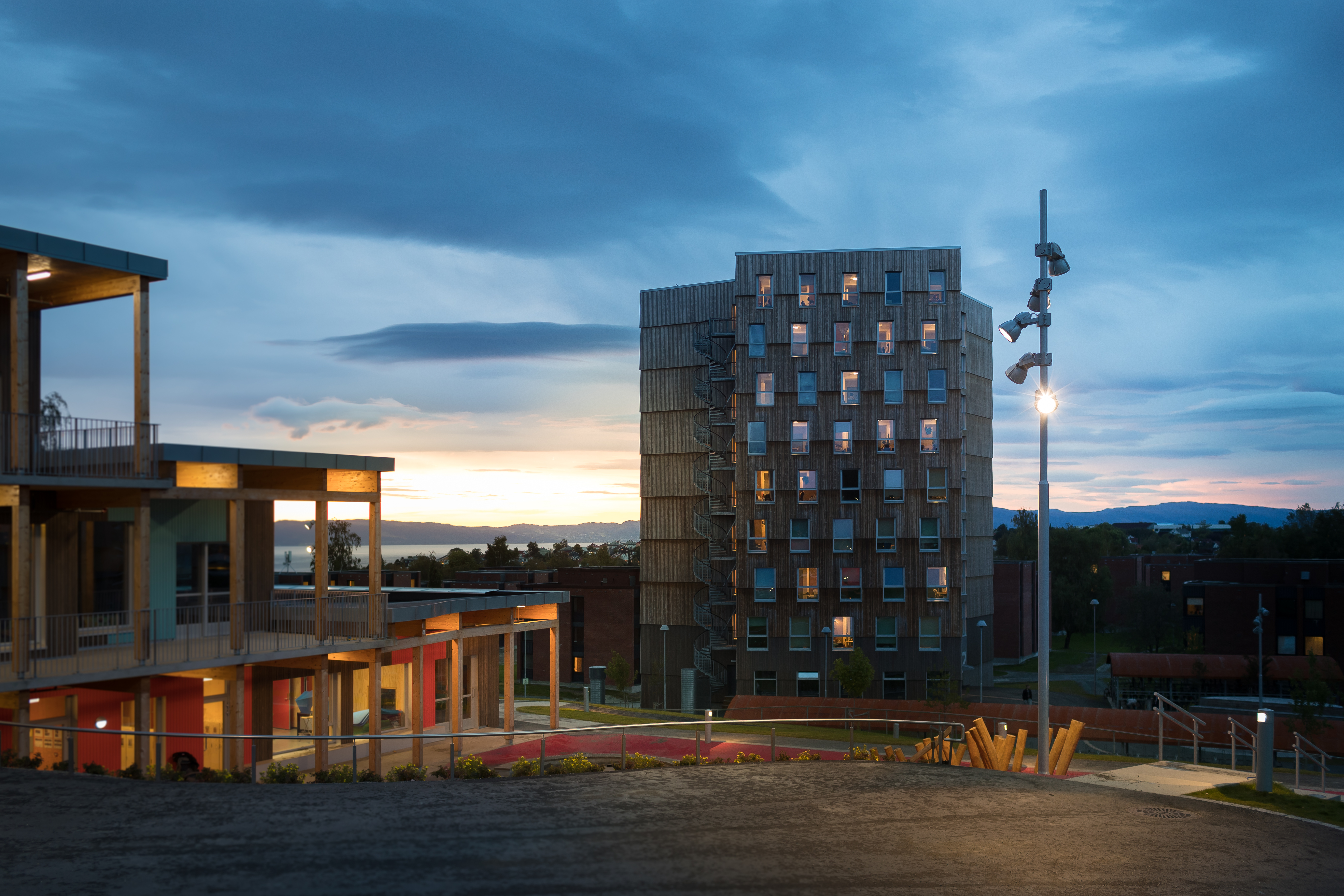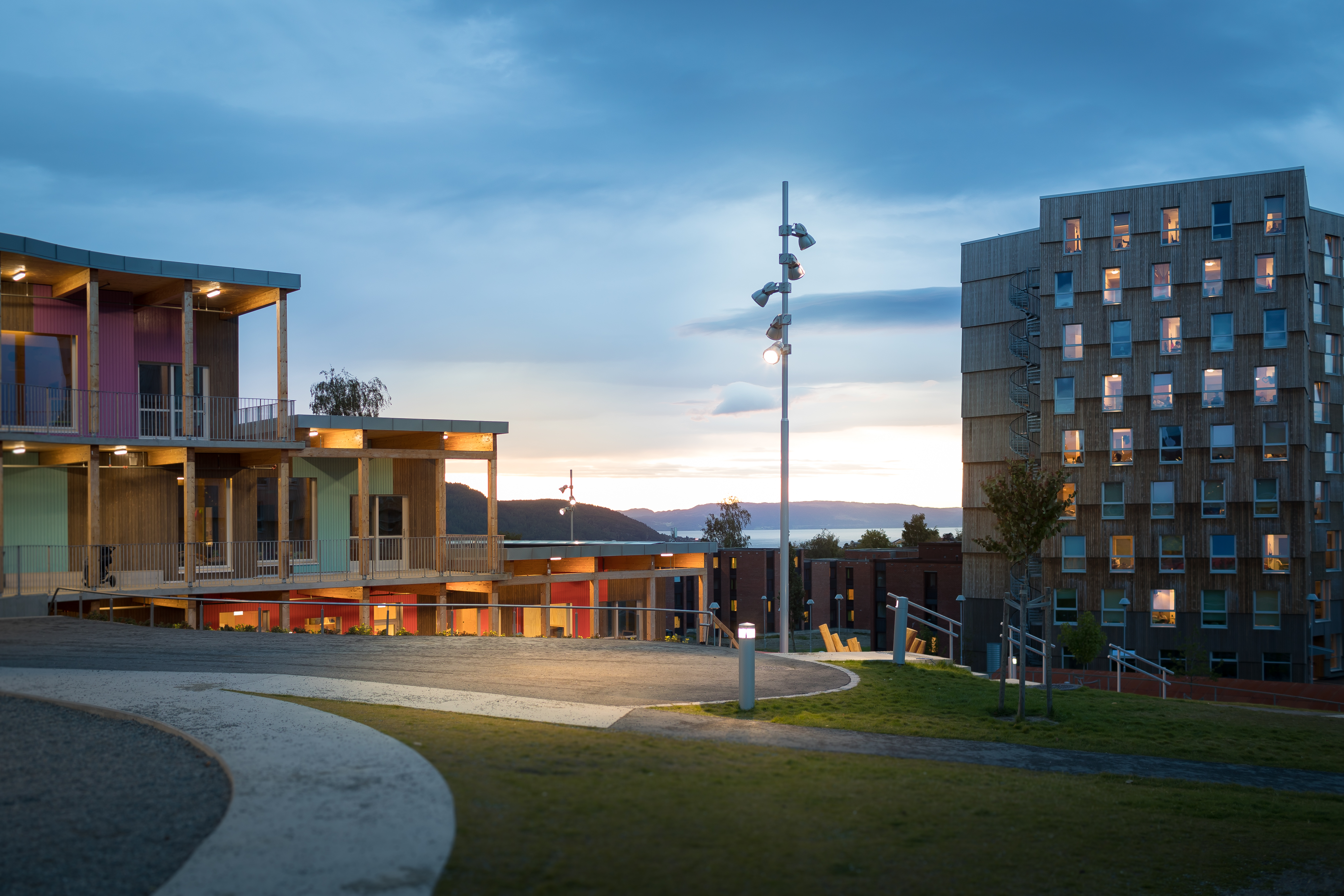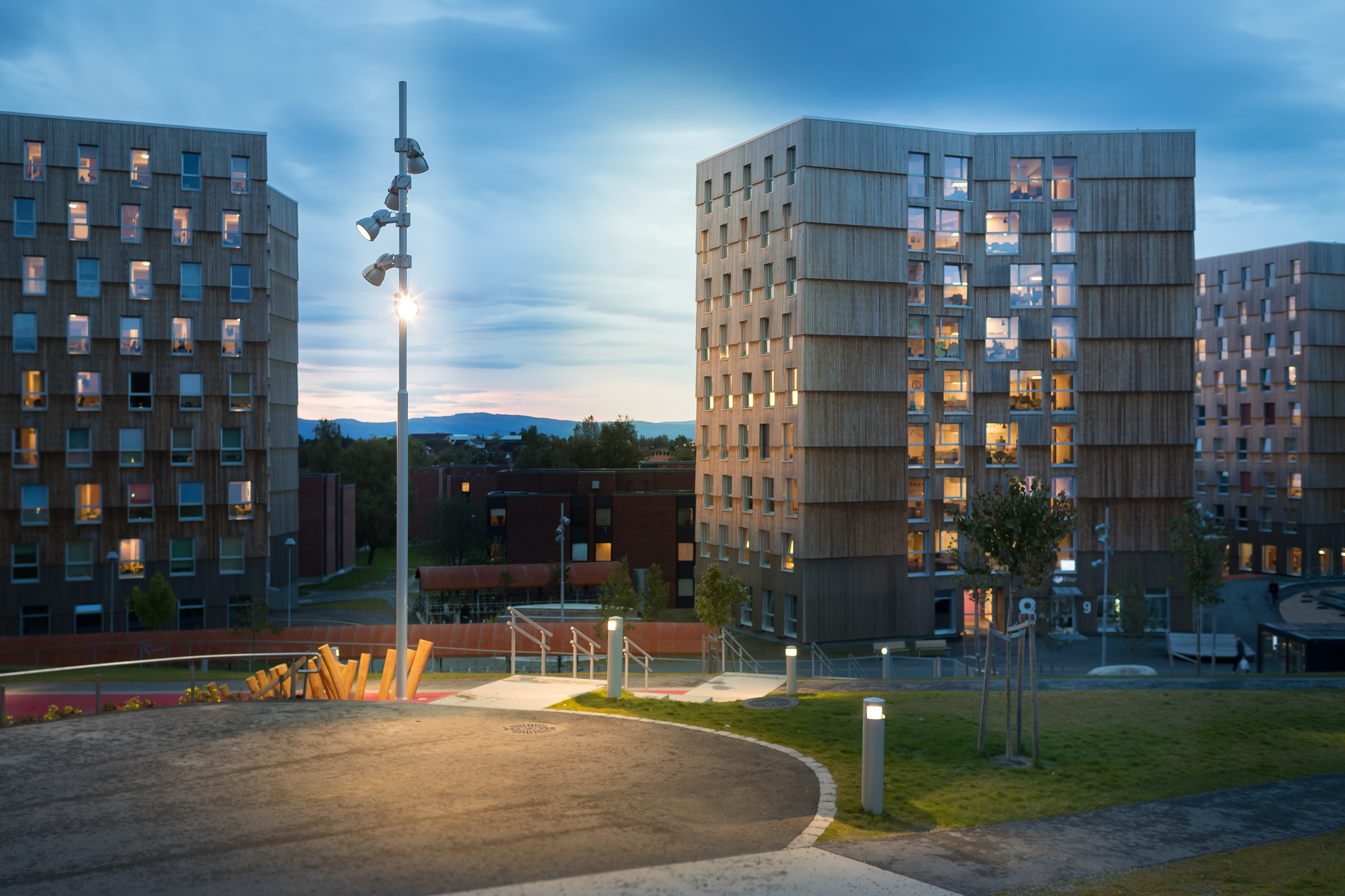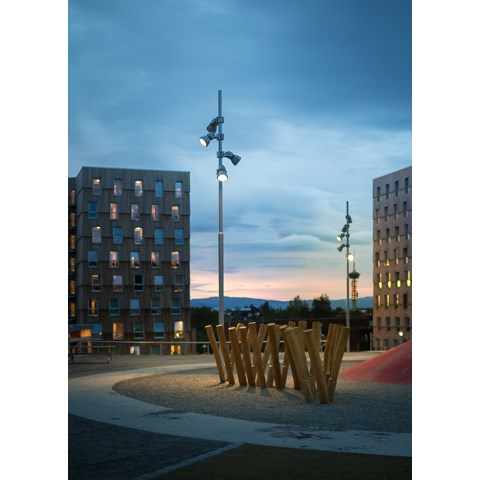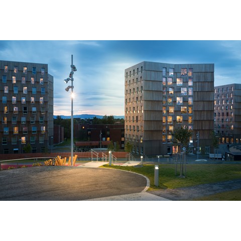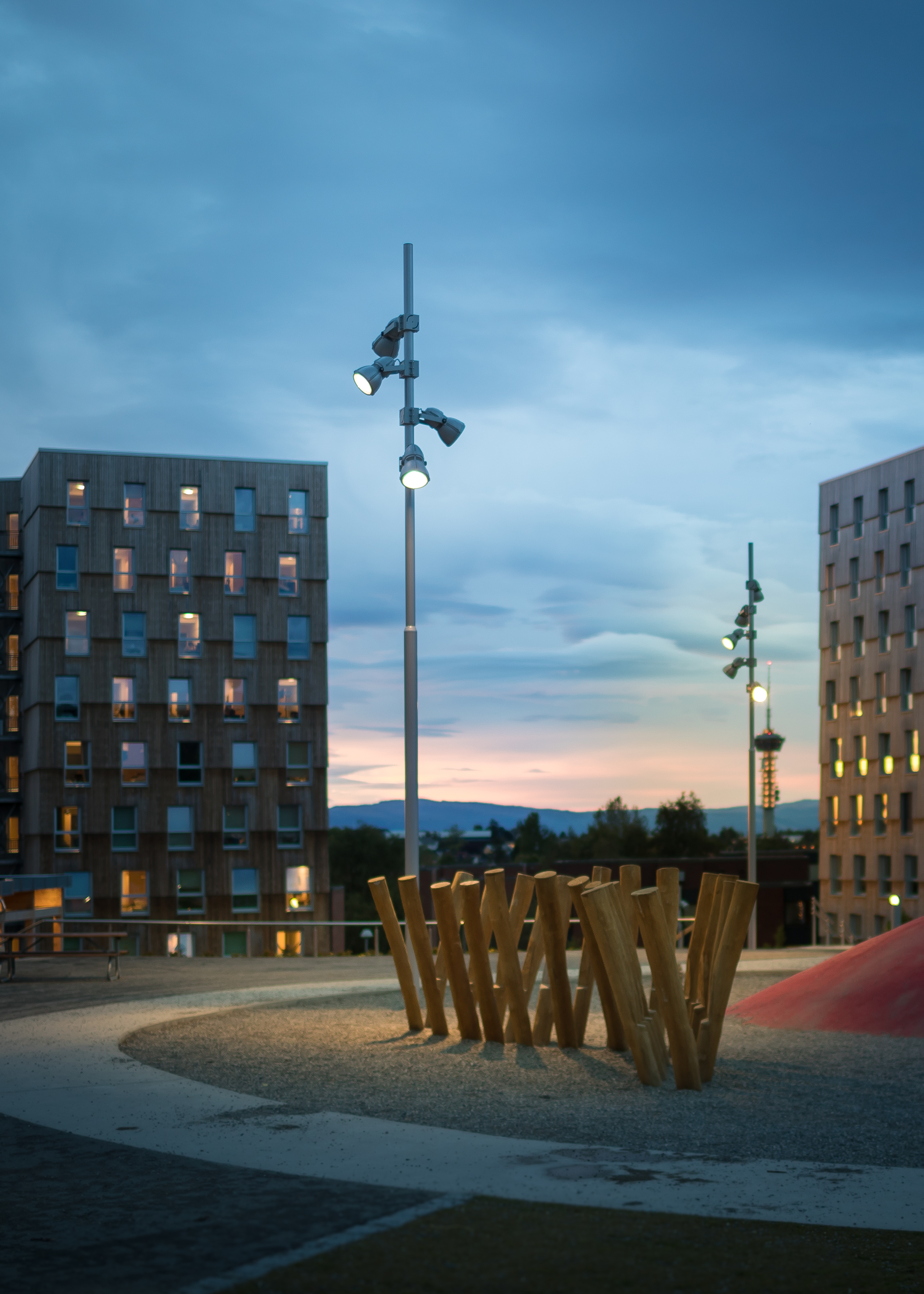 Utendørsbelysning på 7 000 m2 allmenning/ torg som vever sammen nye og eksisterende Moholt samt barnehage.