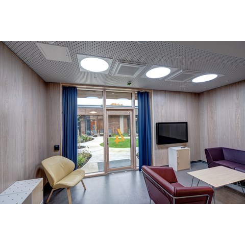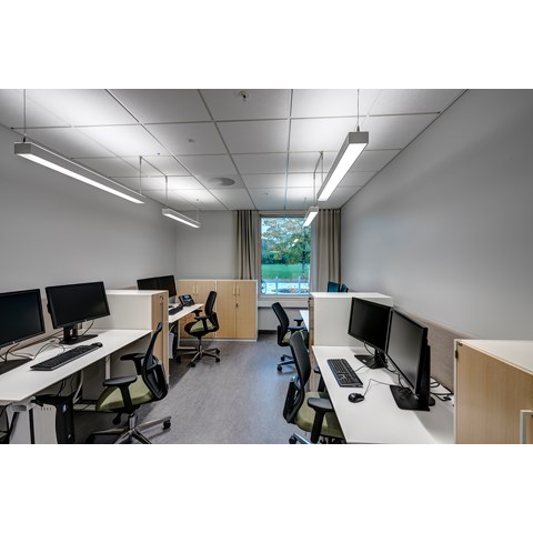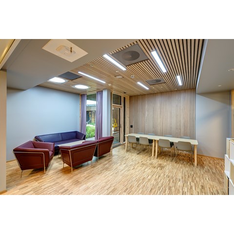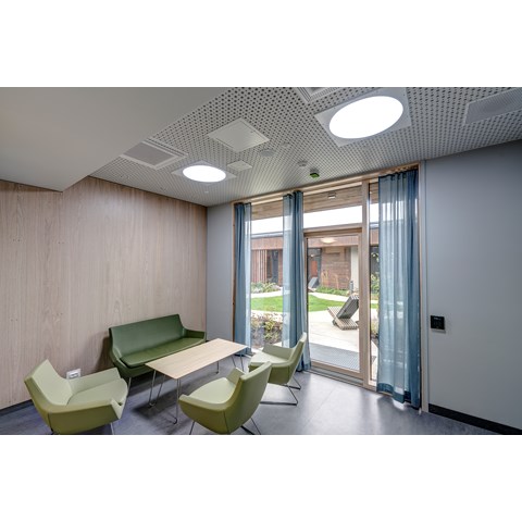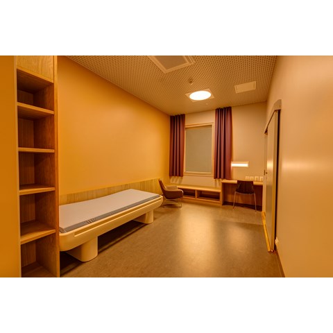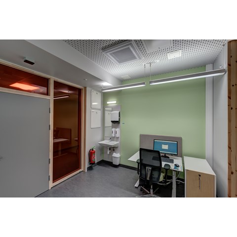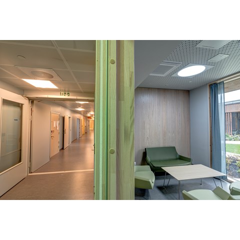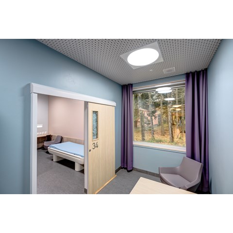 For å få til dette har man benyttet Premium LED-armaturer fra Glamox, med et avansert styringssystem hvor lysinnstillingene er nøye programmert. Lyset for hver pasient kan også styres manuelt av lege eller pleier fra en skjerm.