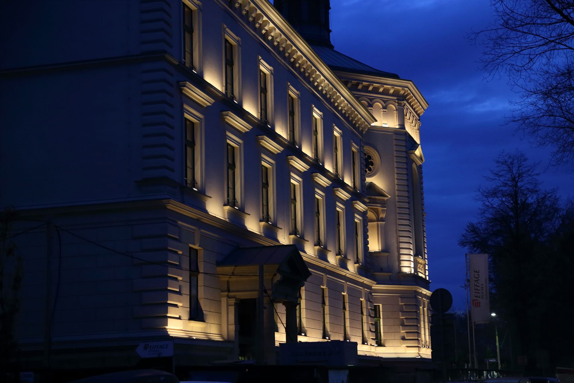 Jednak dzięki doświadczeniu i umiejętnościom naszych specjalistów zaprojektowana iluminacja podkreśliła najpiękniejsze elementy fasady i w efekcie dodała inwestycji jeszcze większego splendoru.