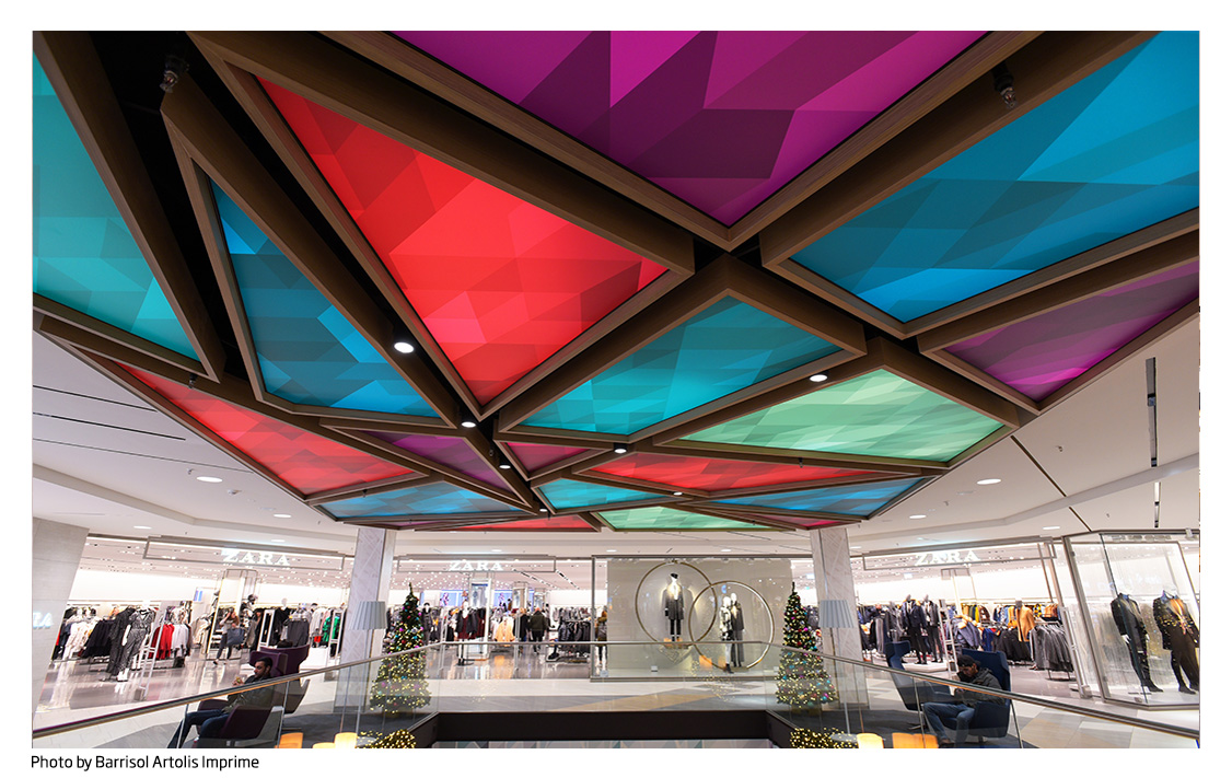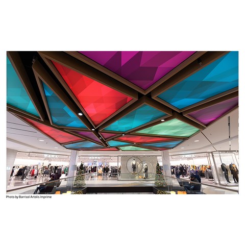 W większości z tych opraw powierzchnię świecącą stanowi specjalna, zadrukowana tkanina dostarczona przez naszego partnera, firmę Barrisol Artolis Imprime. Kolorowe nadruki oddające charakter i klimat obiektu wykonano według wymagań inwestora. Projekt jest autorstwa architektów z ECE Projektmanagement & Co. Germany oraz lighting designera, Tobiasa Linka.