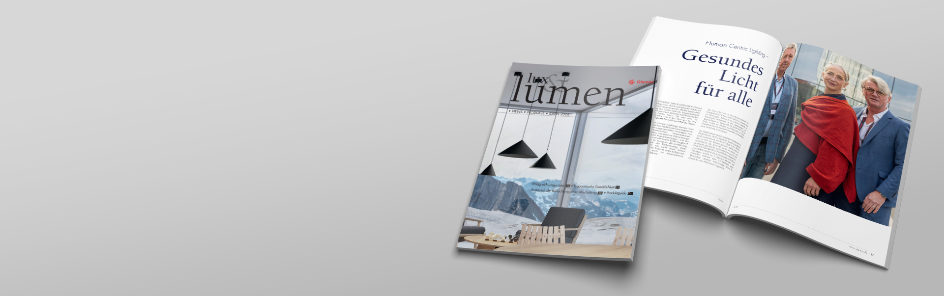 Właśnie ukazał się najnowszy numer naszego rocznika lux&lumen. Tutaj znajdziesz referencje, studia przypadków, aktualności z badań i nie tylko. Dowiedz się więcej o produktach, nowych pomysłach i trendach, w tym o naszych wysiłkach na rzecz rozwoju oświetlenia w technologii Human Centric Lighting.