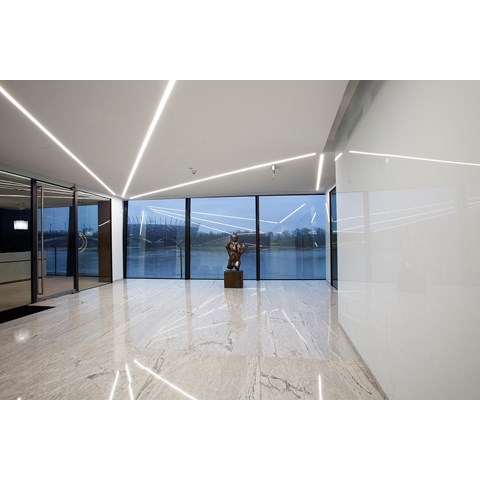 Unikalną formę biurowca dopełnia równie zjawiskowa aranżacja świetlna wykorzystująca między innymi nasze oprawy oświetleniowe 4000 BIS LED. Zlokalizowany nad samym brzegiem Wisły budynek mieści luksusowe apartamenty i ponad 13 tysięcy metrów kwadratowych powierzchni biurowej.
