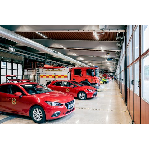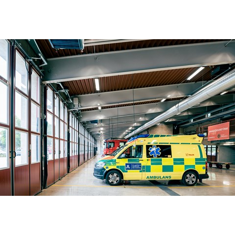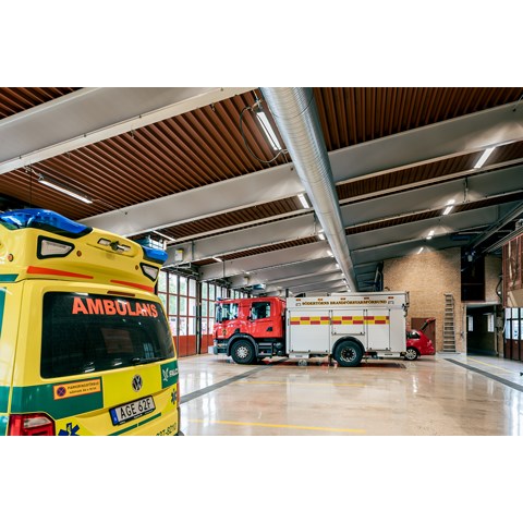 Under 2021 moderniserades och effektiviserades belysningen och styrningen på en av dessa brandstationer, Botkyrkas brandstation.