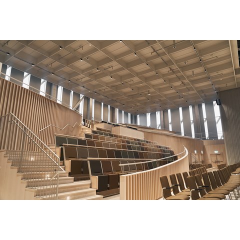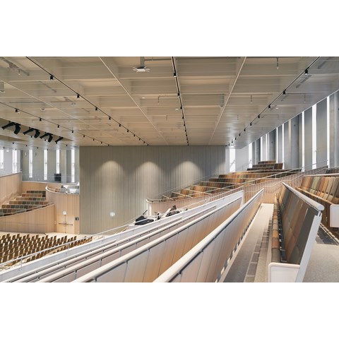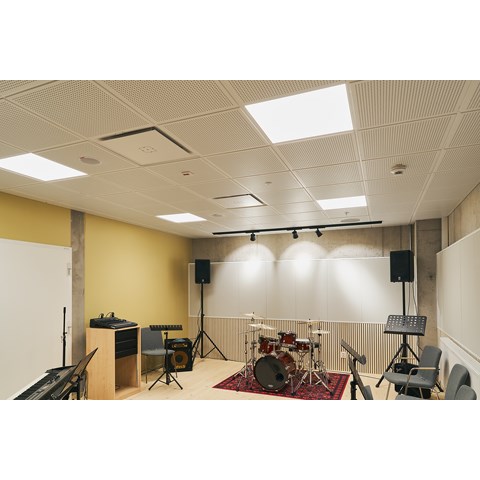 I musikrum och andra temarum finns armaturen C35-R installerad för att ge ett jämnt och behagligt ljus. Över kontorsplatser pendlades C10-P1 för att ge ett bra arbetsljus. I biytor runtom i lokalerna valdes den strömlinjeformade Glamox i60. Över whiteboards och andra tavlor monterades Glamox C21.