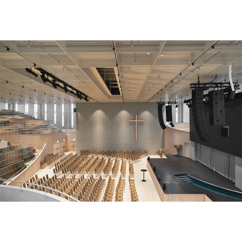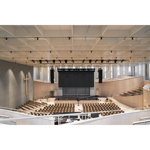 I den stora lokalen som rymmer drygt 1100 personer och där möten, gudstjänster och konserter hålls, har man valt att låta en stor mängd av S90 spot stå för både allmänljus och för att belysa väggar och annat man vill accenturera.
