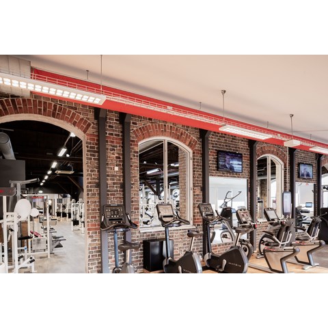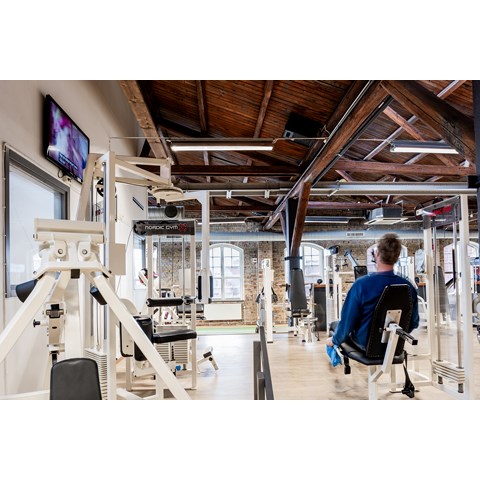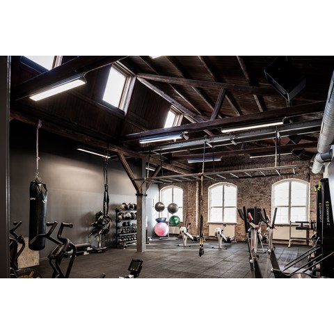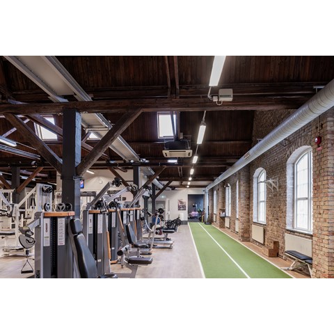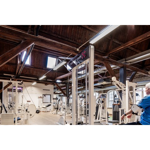 När denna träningsanläggning renoverades var det inte bara armaturernas utseende som var av vikt - man ville också sänka energiförbrukningen genom att välja energisnåla varianter. Och spara på energin, det lyckades man med - en besparing på 70% av den energin som används till att belysa lokalerna.