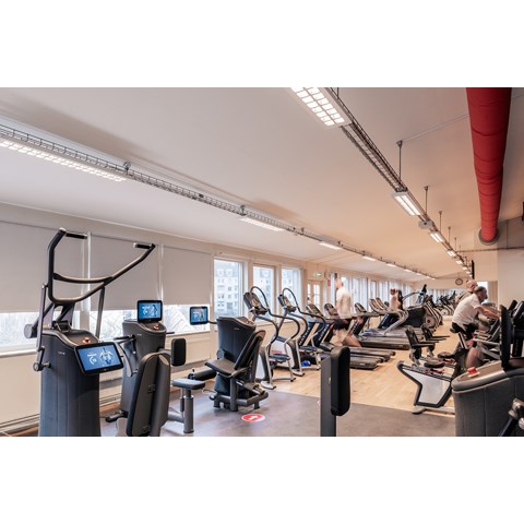 I cardiorummet monterades C77-S och i gymmet och spinningrummet monterades i10 av olika varianter
