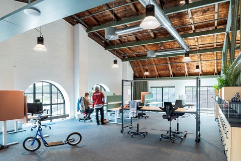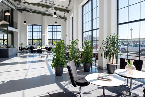 Den nyrenoverade fastigheten invigdes i januari 2019 och är i dag fullt uthyrd. Mjukvaruföretaget Bygglet, som delar fastigheten med tre andra hyresgäster, var en av de första att flytta in. ”Lokalerna är helt fantastiska!” säger Hanna Konyi, VD på Bygglet. ”Jag gillar verkligen arkitekturen där det gamla har bevarats och blandats med det nya. Vi jobbar främst mot hantverkare och då passar fastighetens ruffa och industriella framtoning oss väldigt bra. De luftiga ytorna ger oss dessutom perfekta möjligheter att ha intressanta event med unik inramning. Vi är helnöjda!”