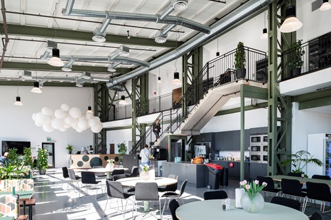 ”Vi hade tydliga designambitioner och genom ett nära samarbete med arkitekterna kunde vi konkretisera vår vision och göra det byggbart”, säger han. ”Den stora utmaningen låg i att omvandla en hundra år gammal fastighet byggd för att vara en lokverkstad till nutida kontor. Ingenting stämde med en modern kontorslokal, så vi har lagt ner mycket arbete på att påla, måla, mura och så vidare för att få till en konstruktion som lyfter fram fastighetens historia och samtidigt funkar som en modern arbetsplats. Vi fick så att säga bygga byggnaden en gång till, för att sömlöst docka i det nya i det gamla.”