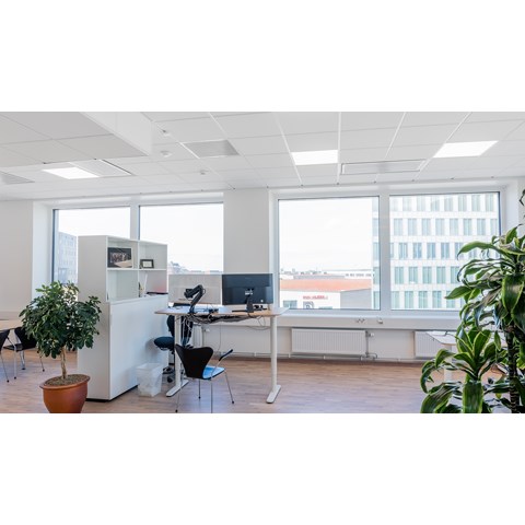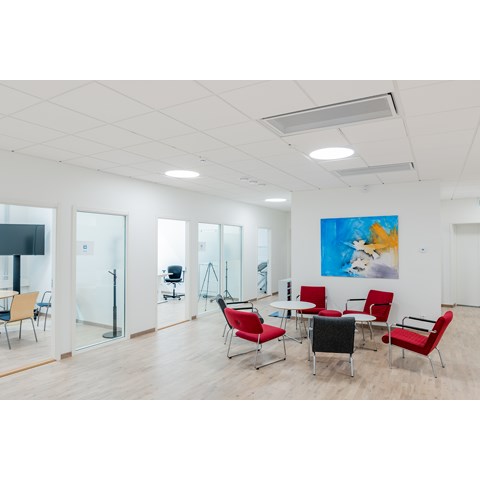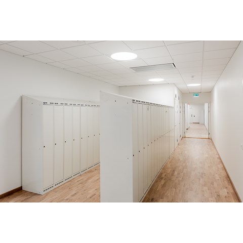 På våningsplanen är C95-R och C95-R Circle infällda i taket. Andra armaturer i de allmänna delarna i lokalerna är A15, i60, A25-S med SMC sensor, A40 samt A41 sitter det även en del av i de olika utrymmena.