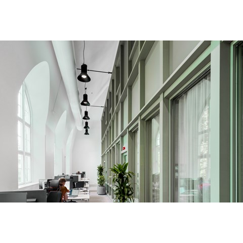 Armaturerna som valdes ut möter inte bara behovet av ett behagligt arbetsljus/allmänljus utan har dessutom ett smickrande formspråk som hjälper till att lyfta fram lokalernas karaktär.