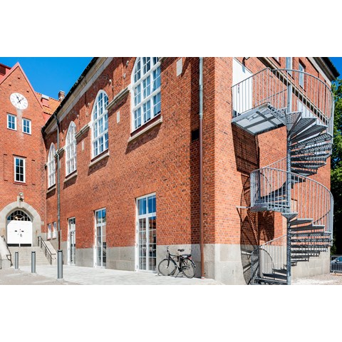 Den bibehållna skolbyggnaden byggdes om till kontorslokaler och bidrar till en naturlig koppling mellan byggnaden och stadsparken. Innergården öppnades även upp för allmänheten, där en egen uteplats skapades för Prisjakt i direkt anslutning till byggnaden.