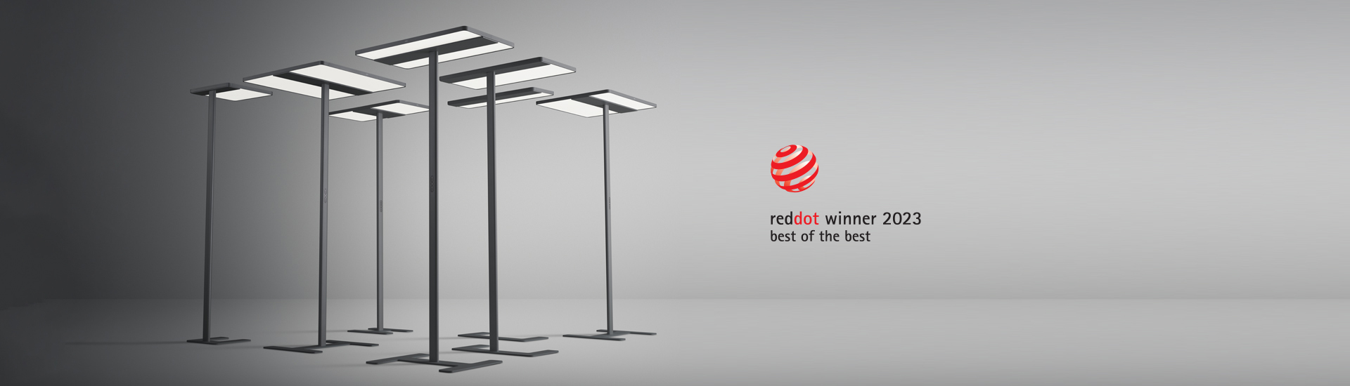 Luxo Adapt-serien har en minimalistisk profil och är designad med flexibilitet i åtanke. Armaturerna finns i svart, grått och vitt och erbjuder olika alternativ för styrning, sensorer och justerbara eller fasta färgtemperaturer. En kontrollpanel på stolpen tillåter oberoende kontroll av ned- och uppljus. Adapts uppljus lyser upp taket, som sedan reflekteras tillbaka på de omgivande områdena nedanför. Detta minskar behovet av dedikerade taklampor, samtidigt som det uppfyller EU-kraven.