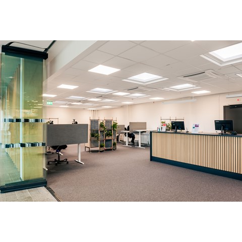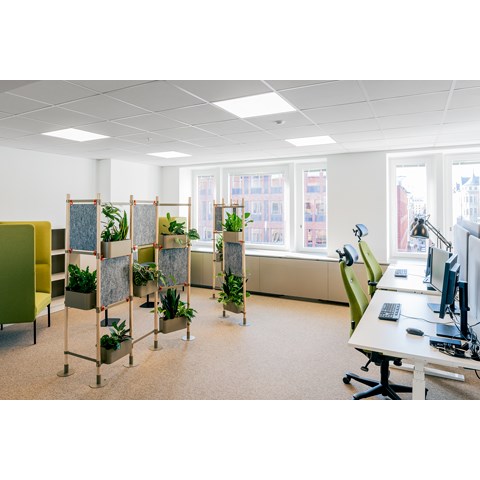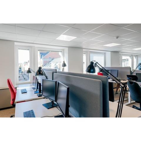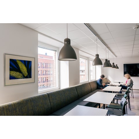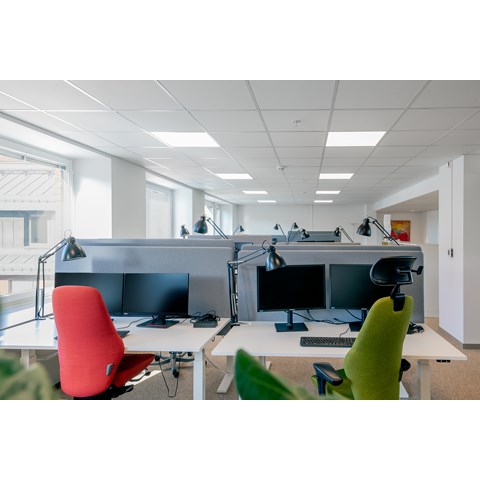 I detta projekt har Glamox samarbetat både med installatörs- och inredningsleden i olika etapper. Som allmänljus i de stora kontorsutrymmena sitter en väldigt stor mängd infällda 600x600 armaturer av typ C35. Individuellt anpassningsbart arbetsljus, skapas med hjälp av skrivbordslampan L-1. Över bord i sociala områden hänger L-1 pendel för att skapa ett behagligt, avslappnat ljus.