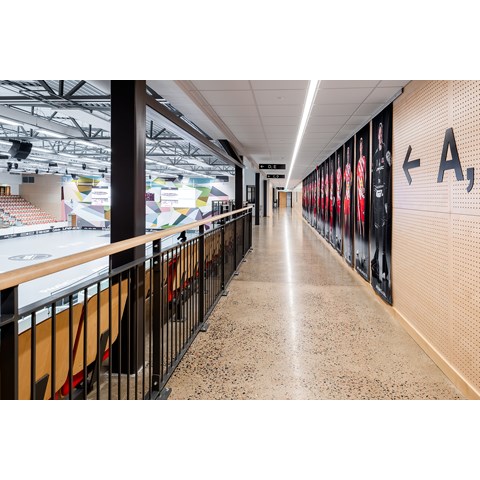 I arenan ryms också en stor träningshall, åtta omklädningsrum, kafeteria och en utställningsdel med konferensutrustning. Direkt innanför entrén finns kiosker och plats för andra försäljningsytor samt biljettkassor.